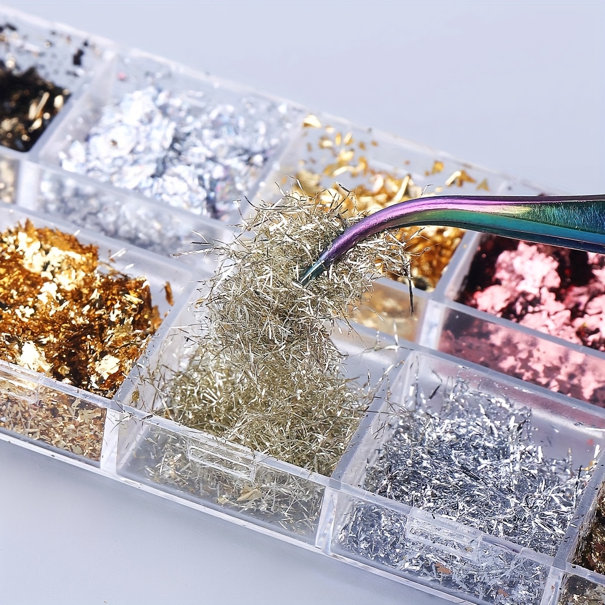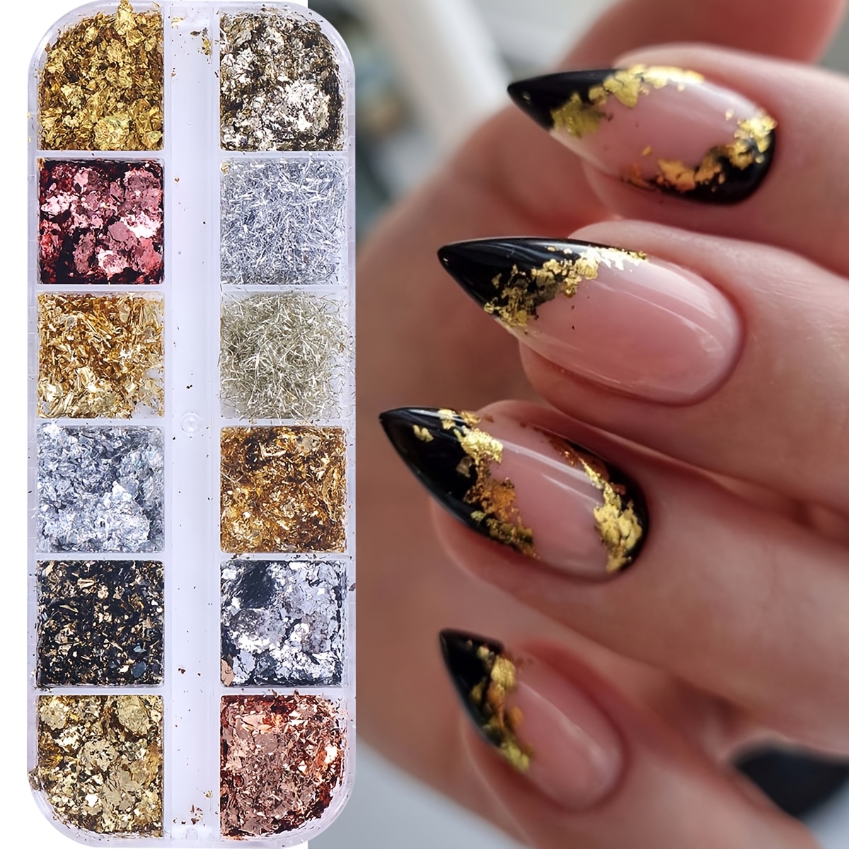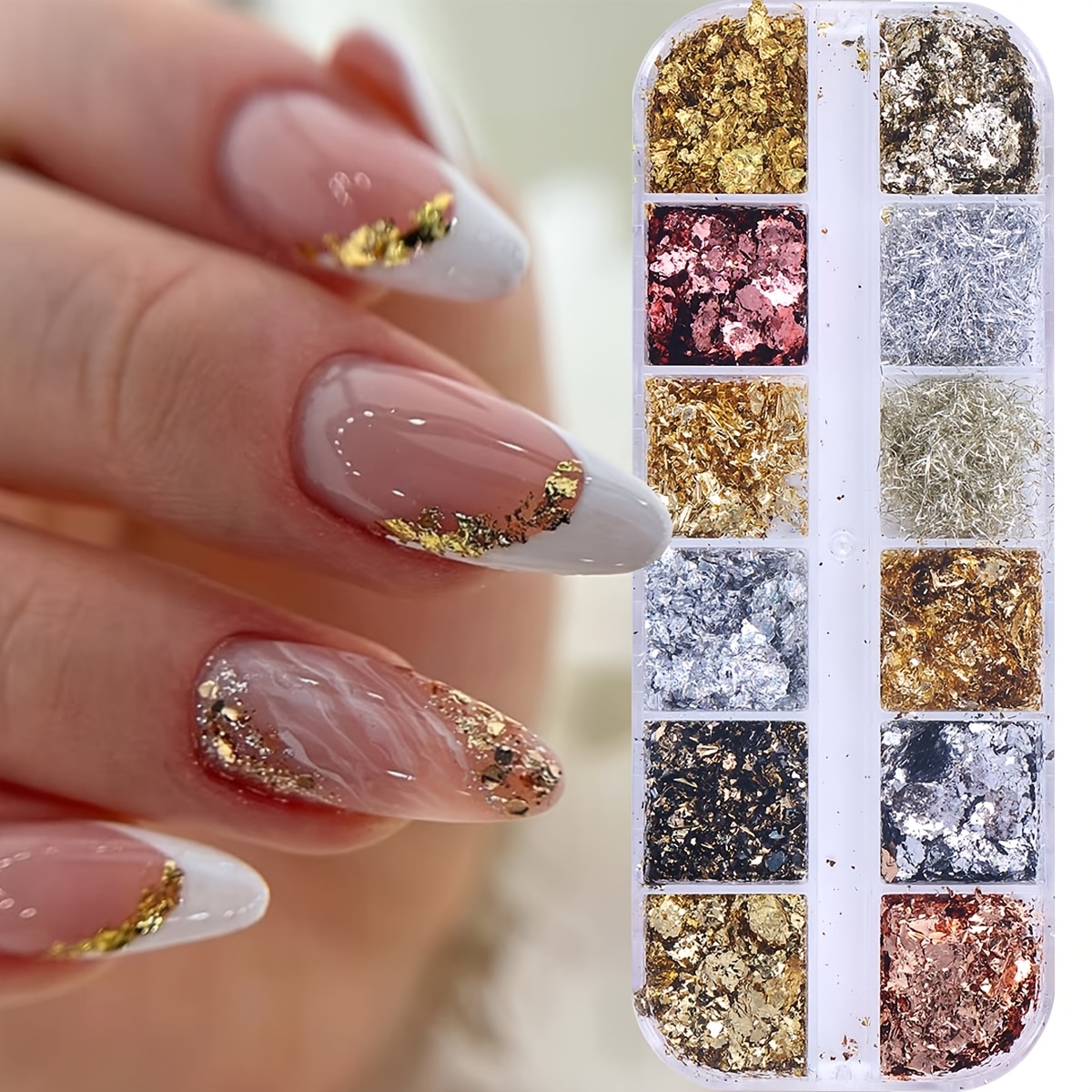 Σετ με 12 διαφορετικές αποχρώσεις μεταλλικών foil flakes για εντυπωσιακά nail art looks. Ιδανικά για χρήση με gel, acrylic, polygel ή απλό βερνίκι, προσθέτουν πολυτελή λάμψη και λεπτομέρεια σε κάθε σχέδιο. Τα φύλλα foil εφαρμόζονται εύκολα και επιτρέπουν από minimal accents μέχρι full glam δημιουργίες.