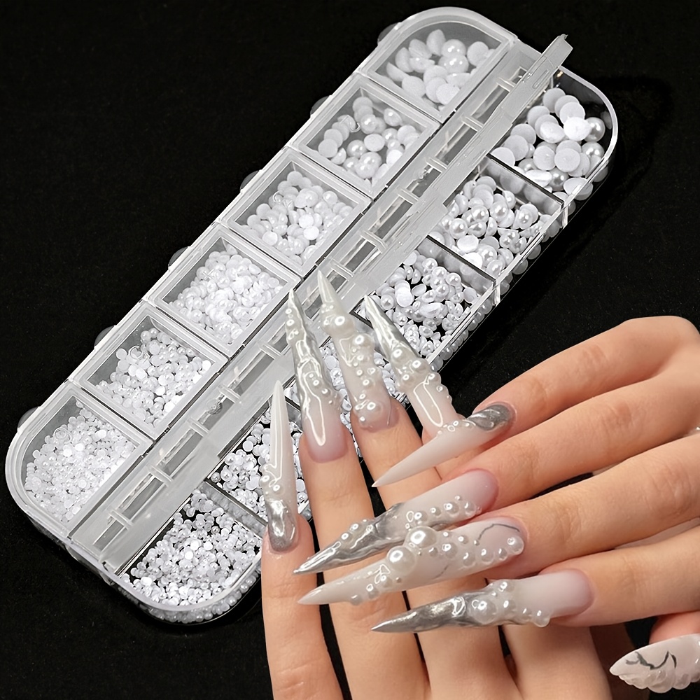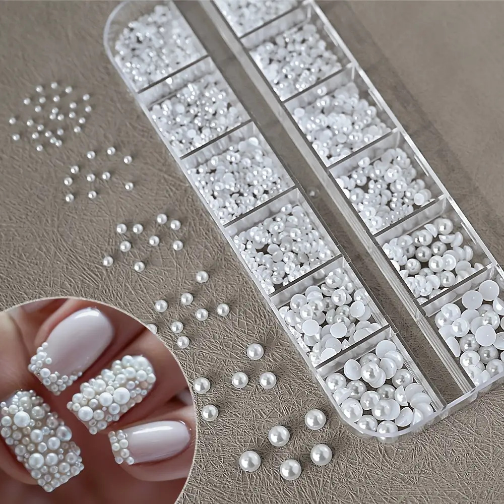 Το 12-Grid White Semicircular Nail Art Set είναι το απόλυτο σετ διακόσμησης για κομψά και εντυπωσιακά νύχια. Περιλαμβάνει λευκές ημικυκλικές πέρλες σε διαφορετικά μεγέθη, οργανωμένες σε πρακτικό κουτί 12 θέσεων.