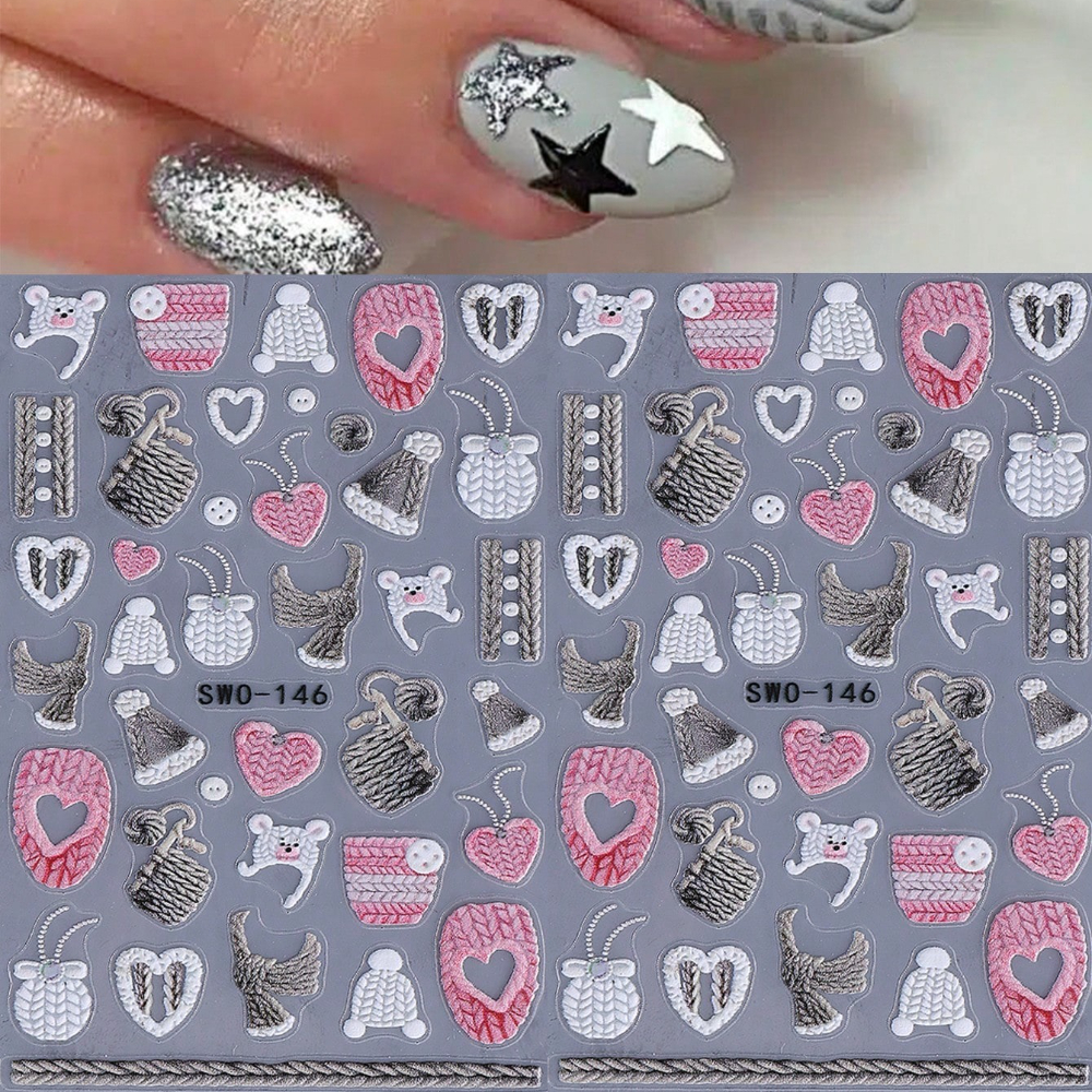 • Ανάγλυφα 5D nail art stickers με cozy sweater σχέδια