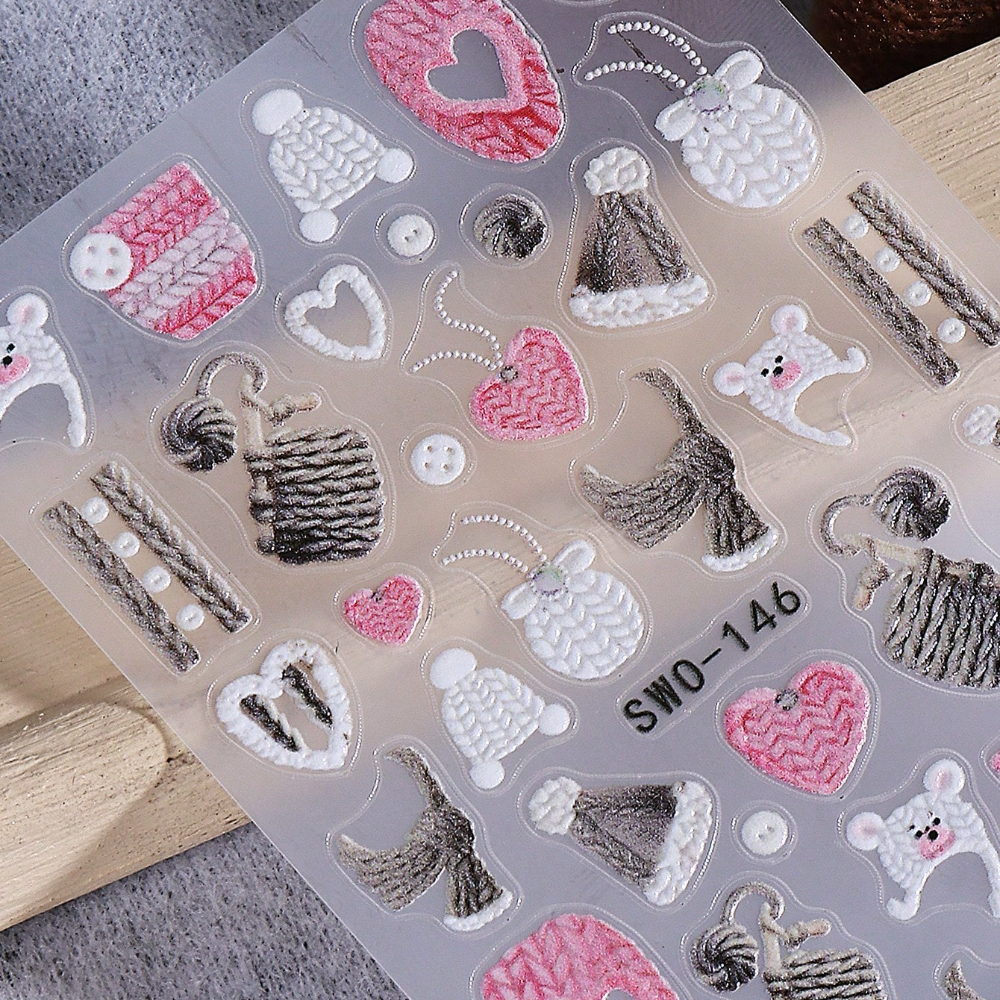 5D Embossed Cozy Sweater Nail Art Stickers