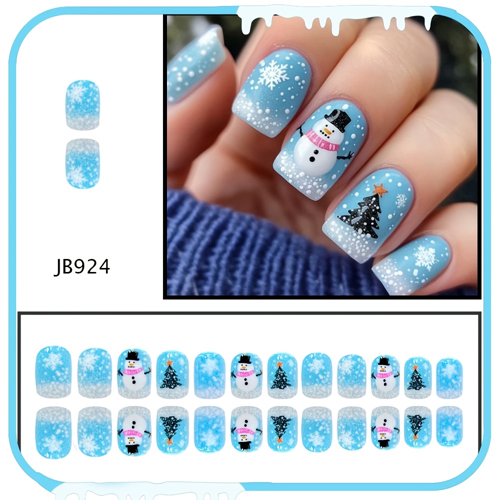 24pcs Winter Christmas Blue Cartoon Press-On Nails