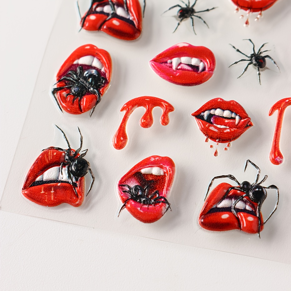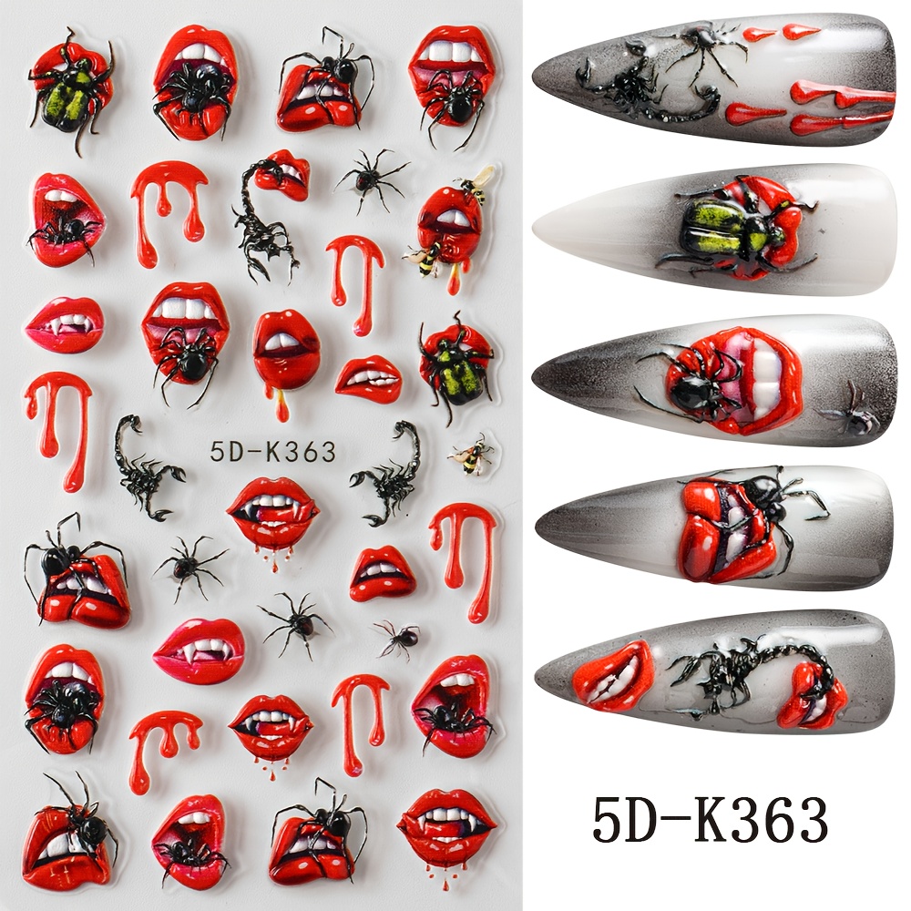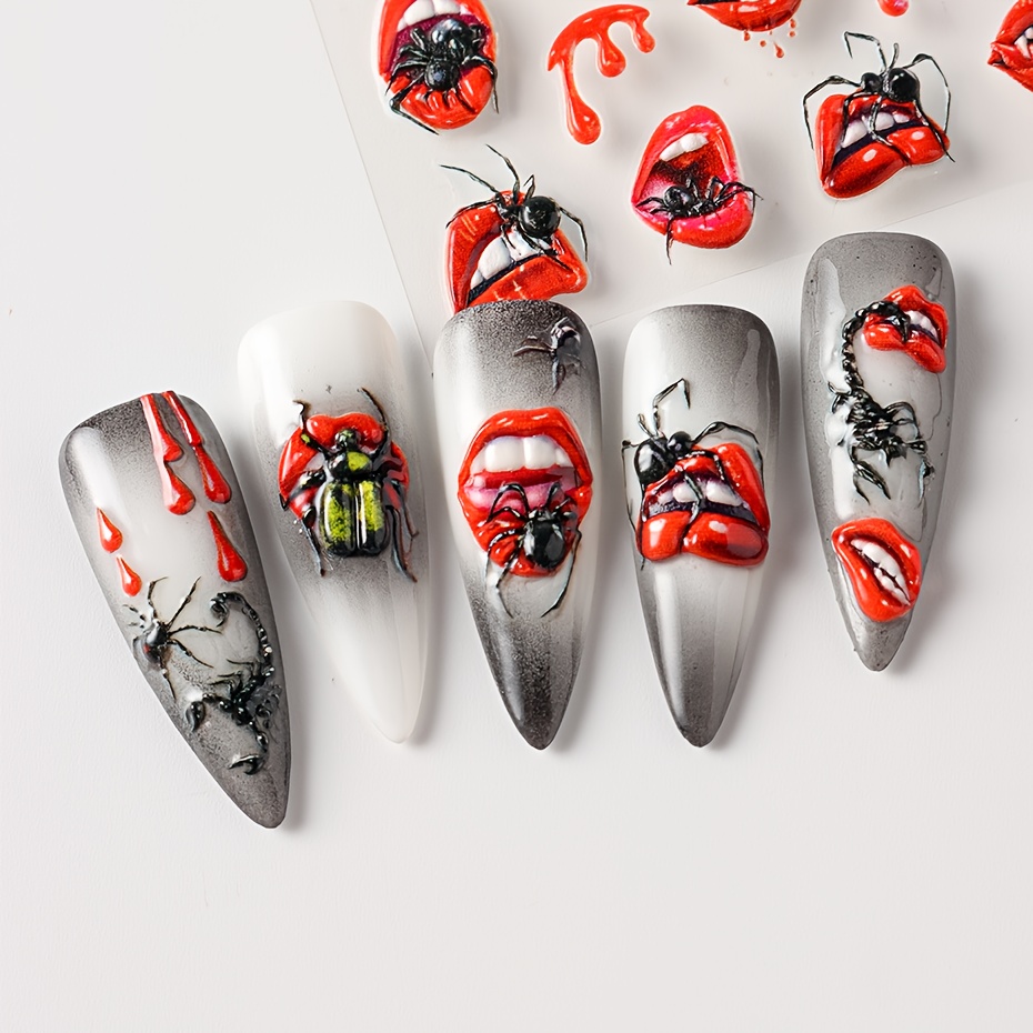 Αυτά τα αυτοκόλλητα συνδυάζουν κρανία, σταυρούς, φίδια, μαύρα τριαντάφυλλα και νυχτερίδες, δημιουργώντας εντυπωσιακό gothic nail art για κάθε spooky περίσταση!