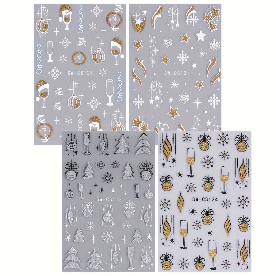 Σετ 4 Φύλλων Χριστουγεννιάτικα Αυτοκόλλητα Ασημί/Χρυσό Glitter