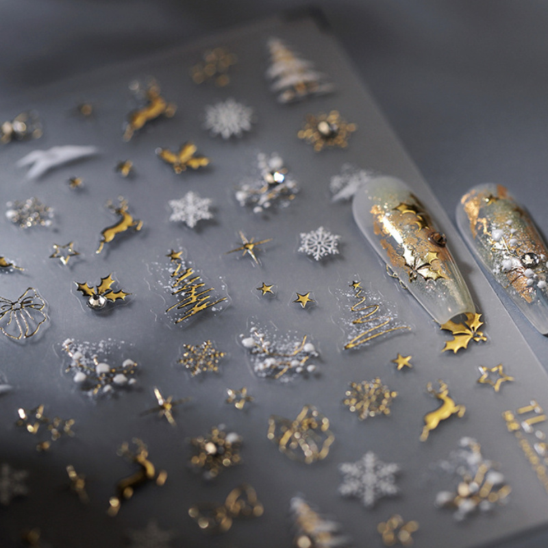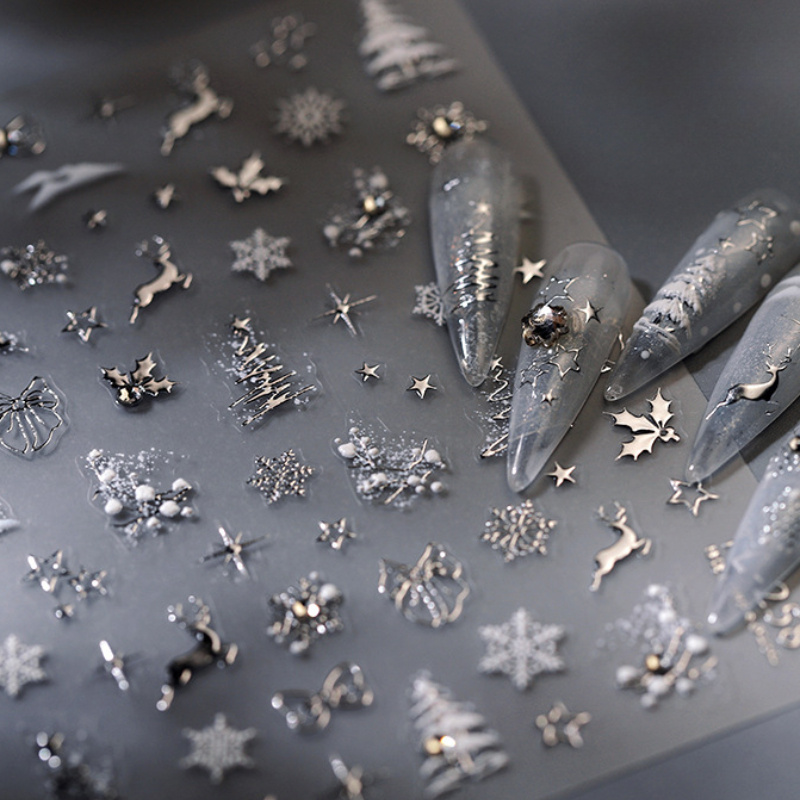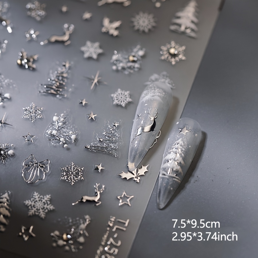 • 1 × Φύλλο 5D ανάγλυφα χριστουγεννιάτικα αυτοκόλλητα νυχιών