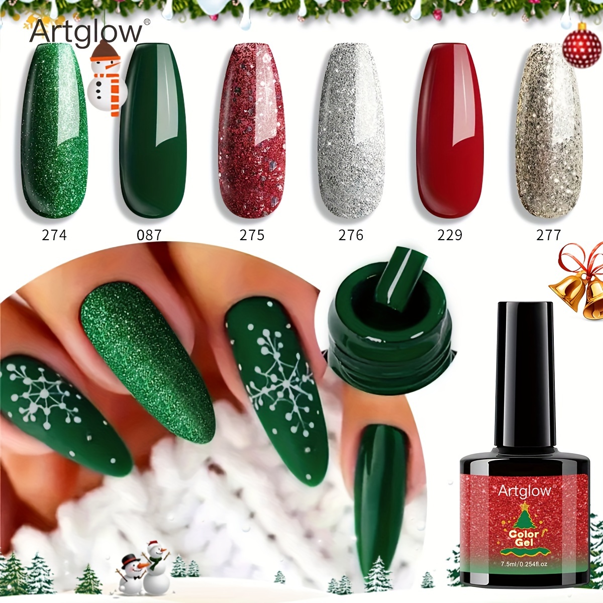 ✨ Δημιούργησε τα πιο γιορτινά και λαμπερά νύχια με το σετ Artglow 6 Colors Christmas Gel Polish Set!