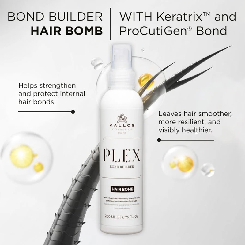 Το Kallos Plex Hair Bomb Spray είναι leave-in conditioner με τεχνολογία Plex Bond Builder, σχεδιασμένο για να επανορθώνει τους δεσμούς της τρίχας, να μειώνει το σπάσιμο και να προσφέρει άμεση απαλότητα και λάμψη χωρίς ξέβγαλμα. Ιδανικό για καθημερινή χρήση σε ταλαιπωρημένα, βαμμένα ή αφυδατωμένα μαλλιά.