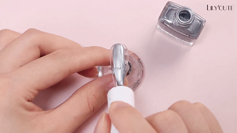 3️⃣ Άπλωσε 1–2 στρώσεις του Metallic Nail Polish.