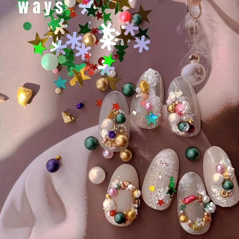 Δώστε στα νύχια σας μια μοναδική, εορταστική λάμψη με το πολυτελές σετ 3D Colorful Christmas Nail Art Caviar Beads!