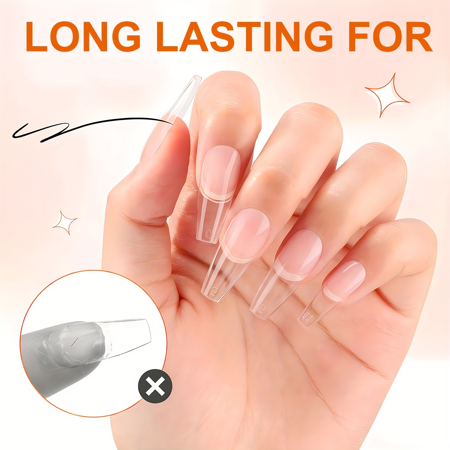 Η σύνθεση βασίζεται σε ειδικά πολυμερή gel υψηλής αντοχής που προσφέρουν ισχυρή πρόσφυση και σταθερότητα, με διάφανη εφαρμογή χωρίς να αλλοιώνεται η εμφάνιση του νυχιού.