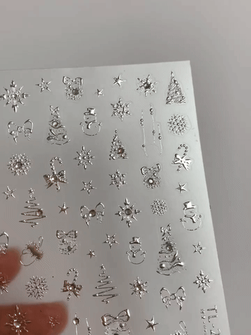 αυτοκόλλητα με γιορτινά σχέδια (δέντρα, νιφάδες, δώρα, αστέρια, αγιοβασιλιάτικα μοτίβα) που χαρίζουν στα νύχια σας μοναδικό, λαμπερό look. ιδανικά για εύκολες και εντυπωσιακές γιορτινές εμφανίσεις.